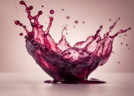 A close-up of a dynamic purple liquid splash captured mid-motion, set against a vibrant background, creating a bold and energetic visual aesthetic.