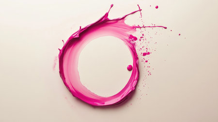 This stunning image features a vibrant pink paint splash forming a circular shape against a soft beige background, highlighting creativity and artistic expression.