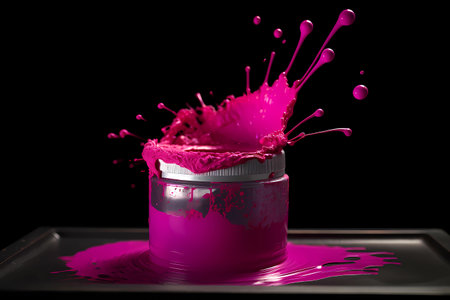 Viva Magenta Paint Can Forms Artistic Splashes. AI Generated