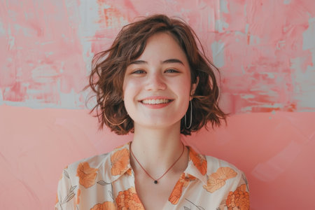 A cheerful young woman with flowing hair smiles into the camera, ai-generated