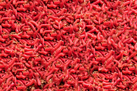 Sago beetles are immersed in water, that are prepared for sale in Fresh market. Full frame, Selective focus and copy space.