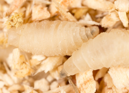 Mountain pine or bark beetle larvae, close up. Parasite destroying trees and furniture.