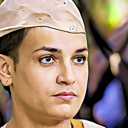 Cartoon-style portrait of person's face.