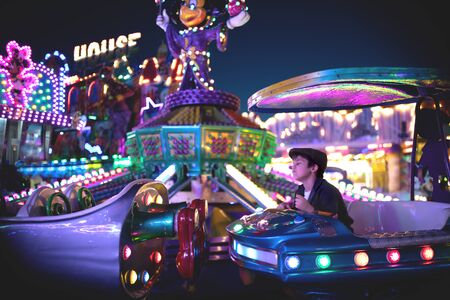 Colorful carosuell in motion at a fun fair. Global Village, Dubai