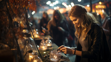 Bustling carnival night blurred bokeh lights illuminate colorful rides, games, and food stalls