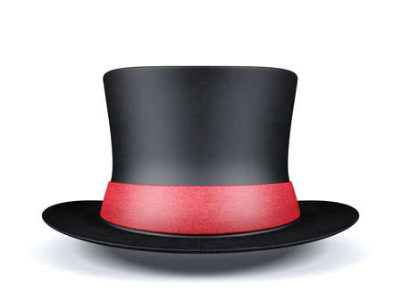 Black short top hat with red ribbon isolated on white background, 3D rendering