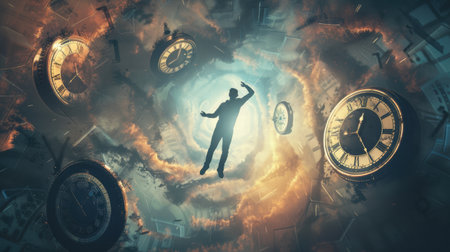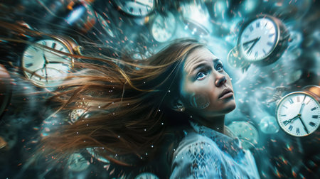 Visual interpretation of chronophobia, showing a distorted sense of time and fear of aging.