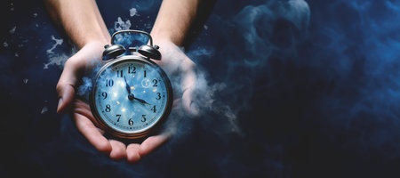 Woman holding an alarm clock with her both hands