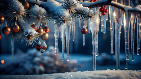 Dazzling Hanging Icicle Decorations Create Winter Magic AI Generated.