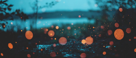 A mesmerizing scene of fireflies creating a natural light show in a forest as dusk settles in.