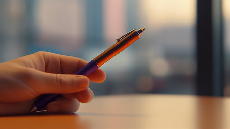 Close-up of a man's hand holding a pen in the office