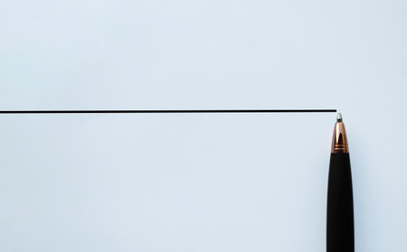 Pen on a white paper with a colored line on a white background