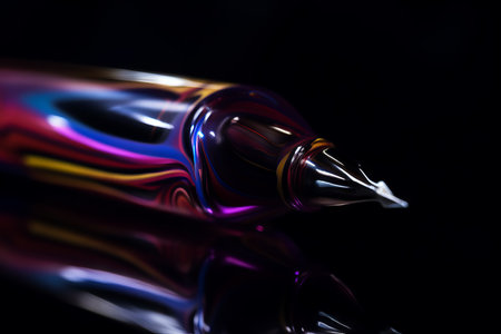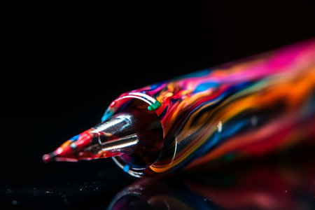 Colorful fountain pen on a black background. Shallow depth of field