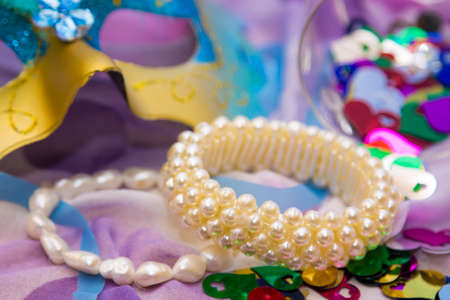 mask, confetti and jewelry, carnival concept