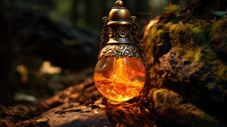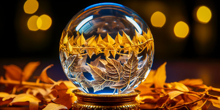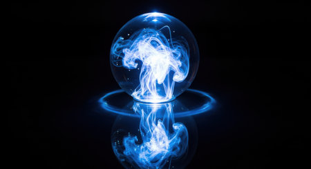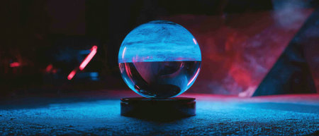Glowing crystal ball reveals mystical visions in an enchanting setting at night