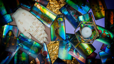 The concept of divination, magic and esotericism. Cards candle on Cartomancy and fortune telling table. high quality photo