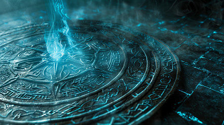 This fantasy art piece showcases the mystical allure of ancient stone Glowing symbols hint at forgotten magic and the power of ancient civilizations
