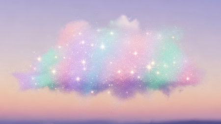 Colorful sky with clouds and stars in pastel colors. Vector illustration.