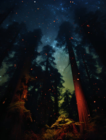 Enchanted Forest Trail of Sparkles and Smoke at Dusk