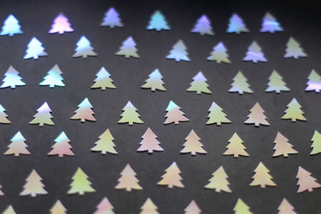 Pastel colored Christmas confetti on dark background. Selective focus.