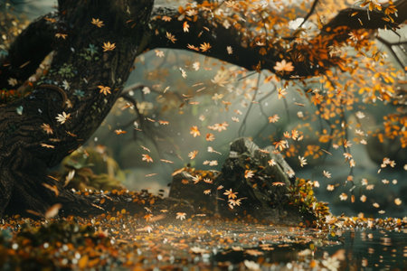 Sunlit autumn forest, leaves crunch underfoot generated by artificial intelligence