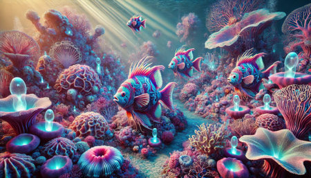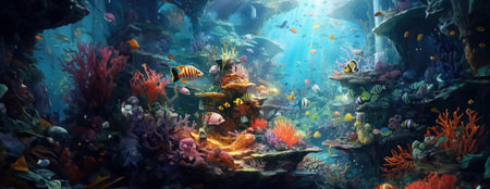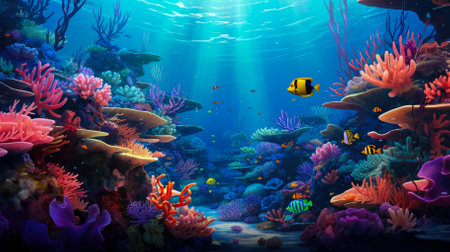 Colorful sea life thrives in tropical reef generated by artificial intelligence
