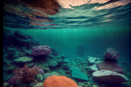 An Underwater View Of Rocks And Rocks Under Water. Generative AI