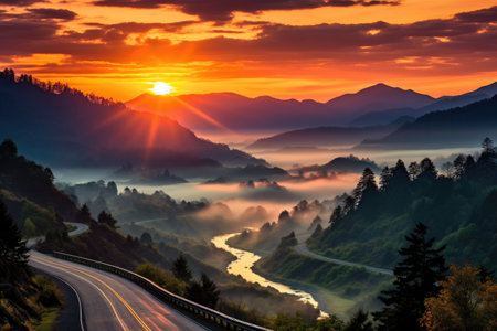 breathtaking sunrise over the misty mountains professional advertising photography