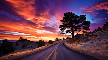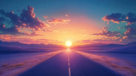 Road to sunset. A Journey towards Dusk. Generative AI. High quality illustration