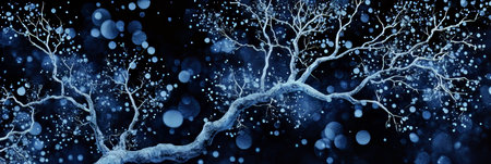 Intricate Network of Branches and Nodes Resembling a Neural Network on a Blue Background