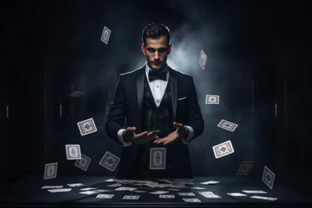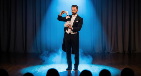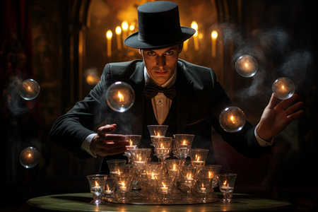 ..Magician mesmerizing with intricate focus. Illusionist captivating audience with sleight of hand