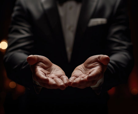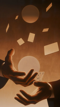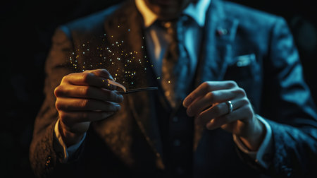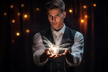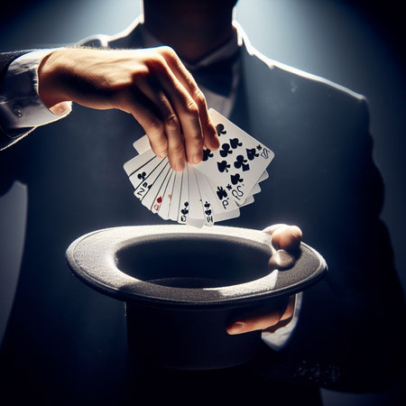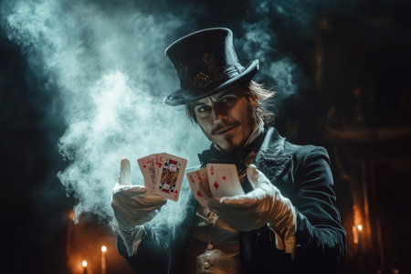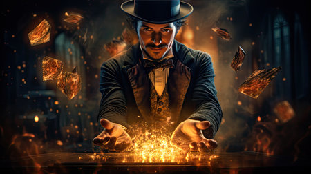 ..Magician mesmerizing with intricate focus. Illusionist captivating audience with sleight of hand