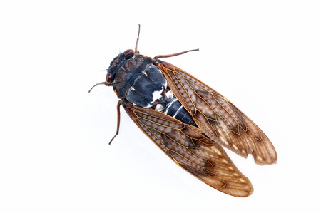 Cicada from Brood II in 2013 in Virginia. Detailed macro image against white background