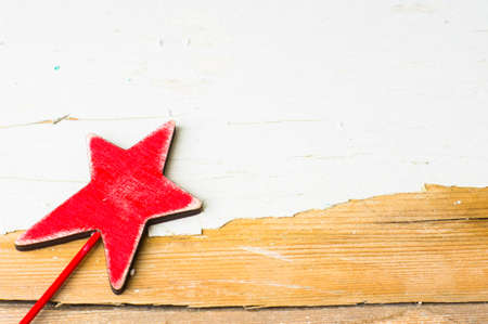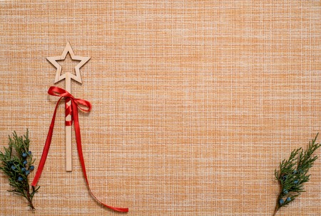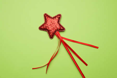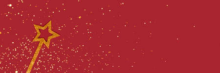Golden magic wand on a red background with copyspace. Festive concept.