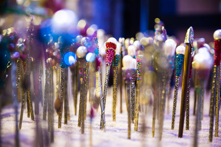 Magic wands laid out on the table of sorcerer