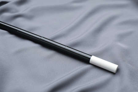 Beautiful black magic wand on gray fabric