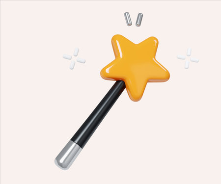 Playful Orange Star Magic Wand Design 3D Render.