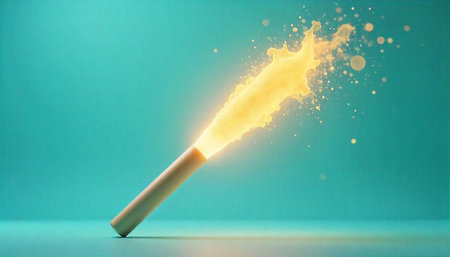 Glittering magic wand with gold colored confetti on a coral background.