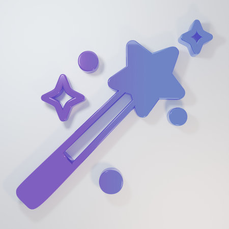 Purple-blue Magic wand icon isolated on gray background. Star shape magic accessory. Magical power. Minimalism concept. 3D render illustration.