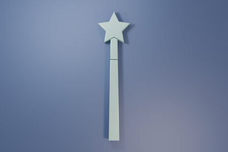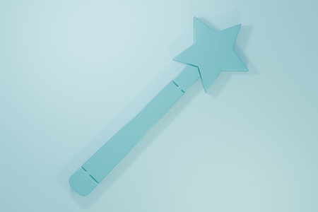 Blue Magic wand icon isolated on blue background. Star shape magic accessory. Magical power. Minimalism concept. 3D render illustration.
