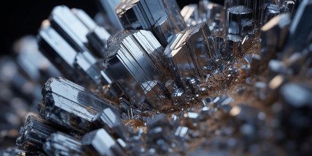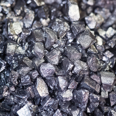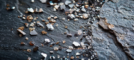 Close-Up of Rare Earth Mineral Flakes on Dark Slate Surface for Scientific Exploration