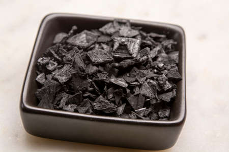 Black sea salt close up, add drama and style to your meals by sprinkling on some Cyprus Black Salt shiny black pyramid-shaped crystals right at your table