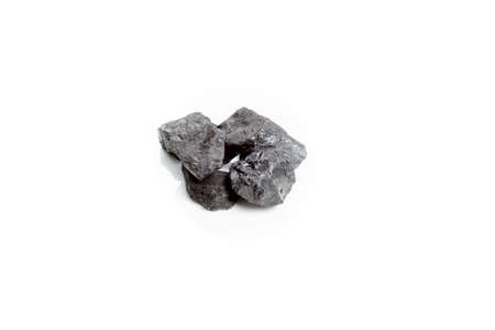 Manganese, manganese or magnesium stone is a chemical element, it is in the manufacture of metal alloys. Silver colored pray, industrial use. Pray on black isolated background.