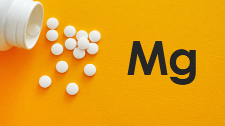 Magnesium supplement for Health care. Minerals for body health and dieting. Copy space for text
