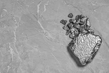 Shiny Platinum Ore Nuggets in Natural Light Mineral Mining Concept