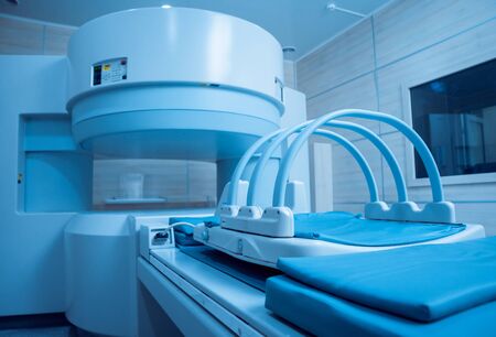 modern high-tech MRI machine in a medical office, close-up front view