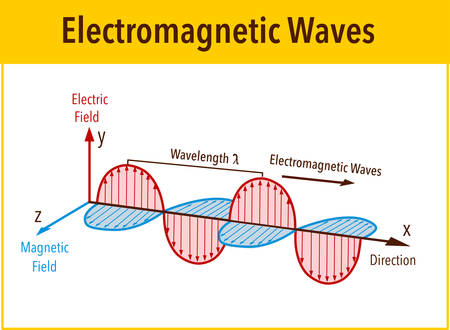 Electromagnetic Wave structure and parameters, vector illustration diagram with wavelength, amplitude, frequency, speed and wave types