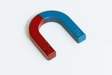 Close-up of red and blue magnet Object on a White Background