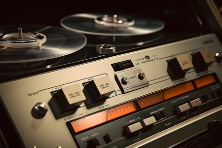 Vintage reel to reel tape recorder, old analogue audio recorder. Nostalgic audio gear