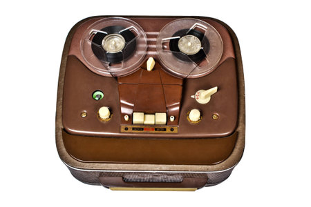 vintage analog recorder reel to reel on white background